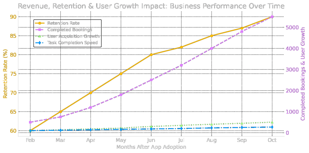 Task completion time dropped significantly due to optimized booking and navigation flows