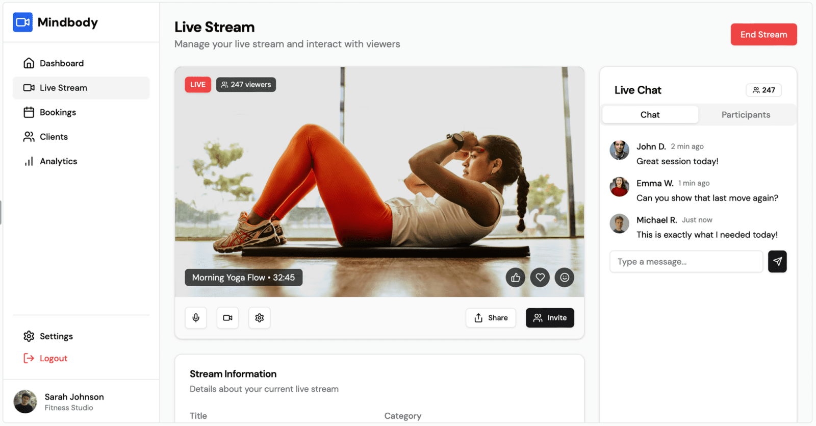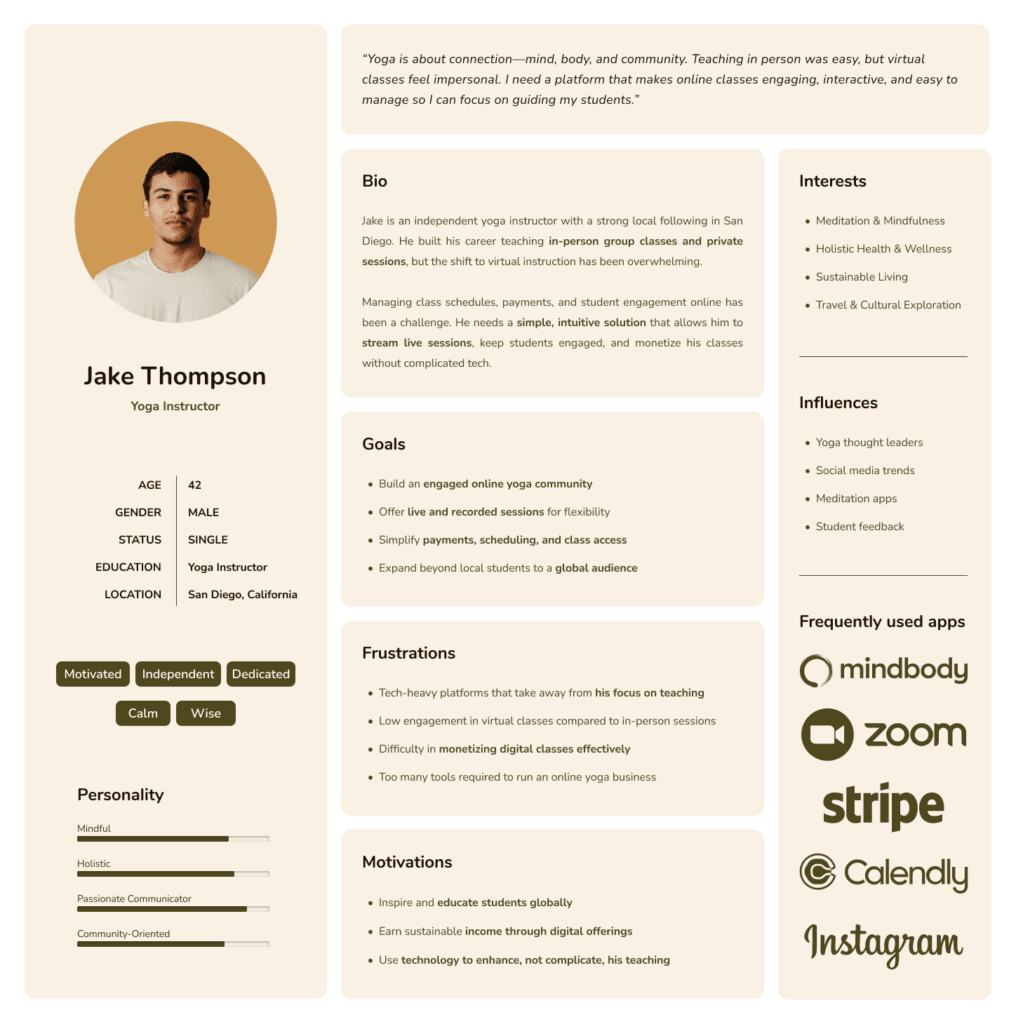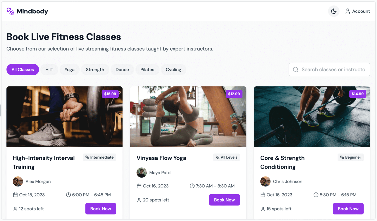 Mindbody’s customers—yoga studios, personal trainers, boutique gyms, and wellness coaches—built their businesses on in-person interactions. Many had no prior experience running virtual classes and needed a simple, all-in-one solution that handled streaming, scheduling, and payments without overwhelming them technically.